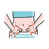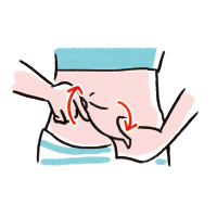 手をグーにして、おしりを下から上に持ち上げるようにさする。