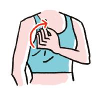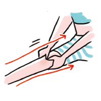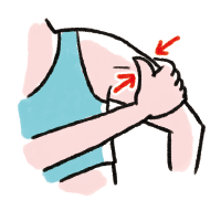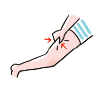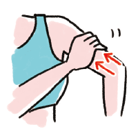 腕の付け根周辺を、つまんで揉みほぐす。