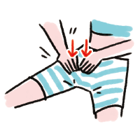 両手の指をそろえて、足の付け根をぎゅーっと押す。
