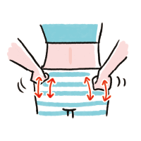 両手をグーにして、腰まわりを上下にさすってほぐす。