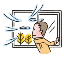 閉め切った室内にいると汚れた空気を吸うことになり、抵抗力が下がってしまいます。2~3時間に1回は換気をして、室内の空気を入れ替えましょう。