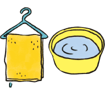 空気の乾燥を防ぐために室内では加湿をしましょう。加湿器がないときは、室内で濡れタオルを干したり、水を入れた洗面器を置いておきましょう。