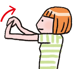腕を前に伸ばし、反対の手で指をつかんで、手前に引っ張る。
