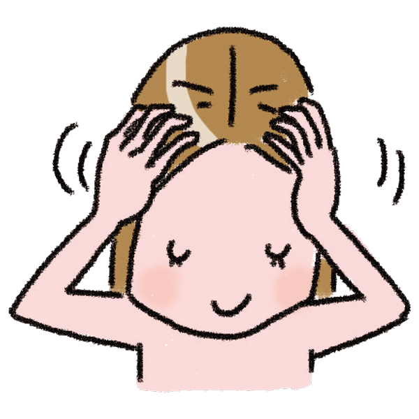 前髪の生え際から頭頂部にかけて、指の腹で頭皮をマッサージします。
