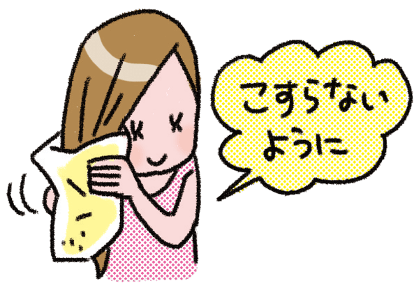 1タオルで髪を包み込むように、やさしく水分を拭き取ります。