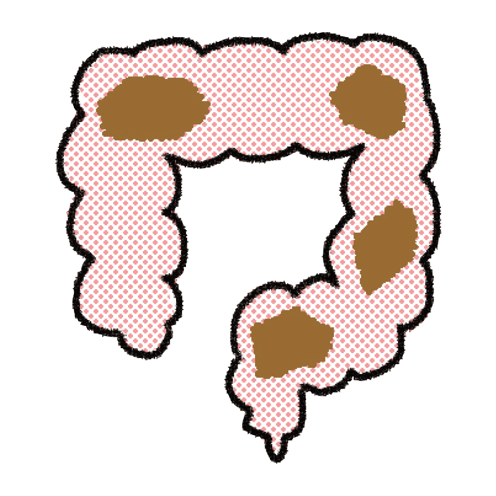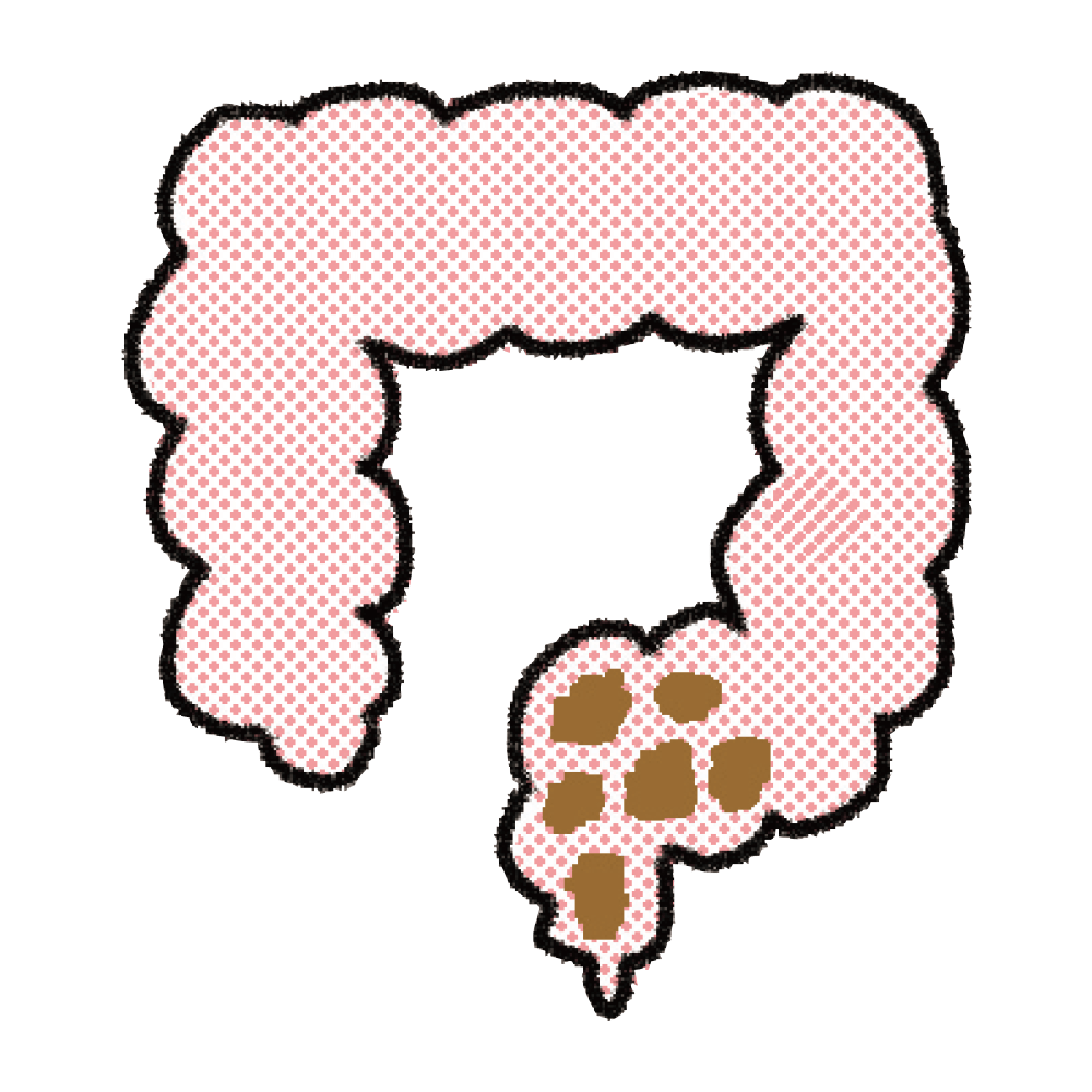 食物繊維の不足や腹筋の弱まりから、腸の動きが悪化して便が大腸に長くとどまり、水分が吸収されて硬くなります。