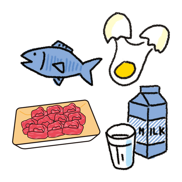 筋肉のもとになるアミノ酸をつくる(魚・卵・乳製品など)
