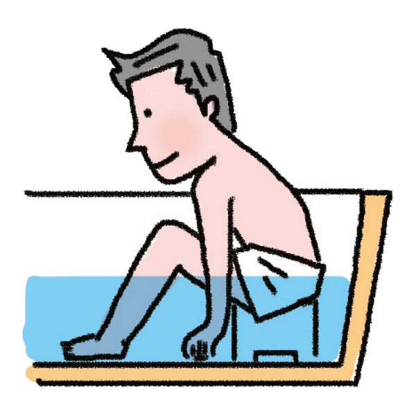 ①熱め(42℃程度)のお湯を少なめにはり、肘から先・ひざから下を浸けて10~15分温まる。
