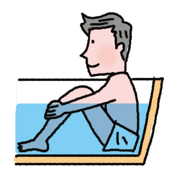 ②ぬるめのお湯を加えて38℃程度にし、みぞおちあたりまで浸かって10~15分温まる。
