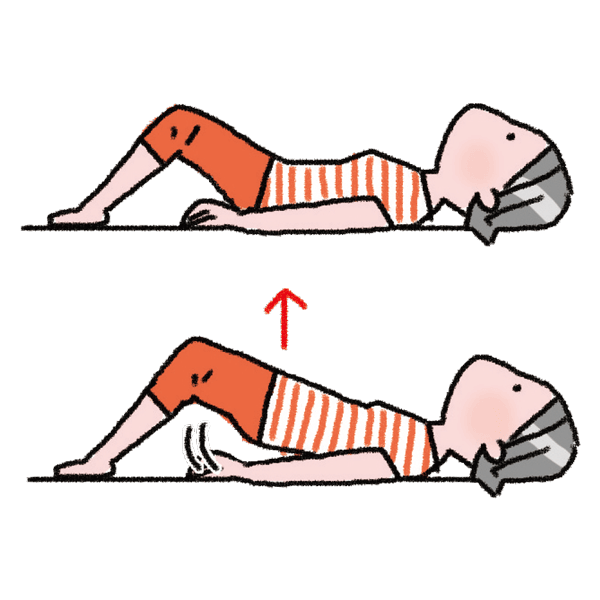 ②肛門を締め、息を吐きながらお尻を上げて5秒キープ→降ろす動きを10回繰り返す。
