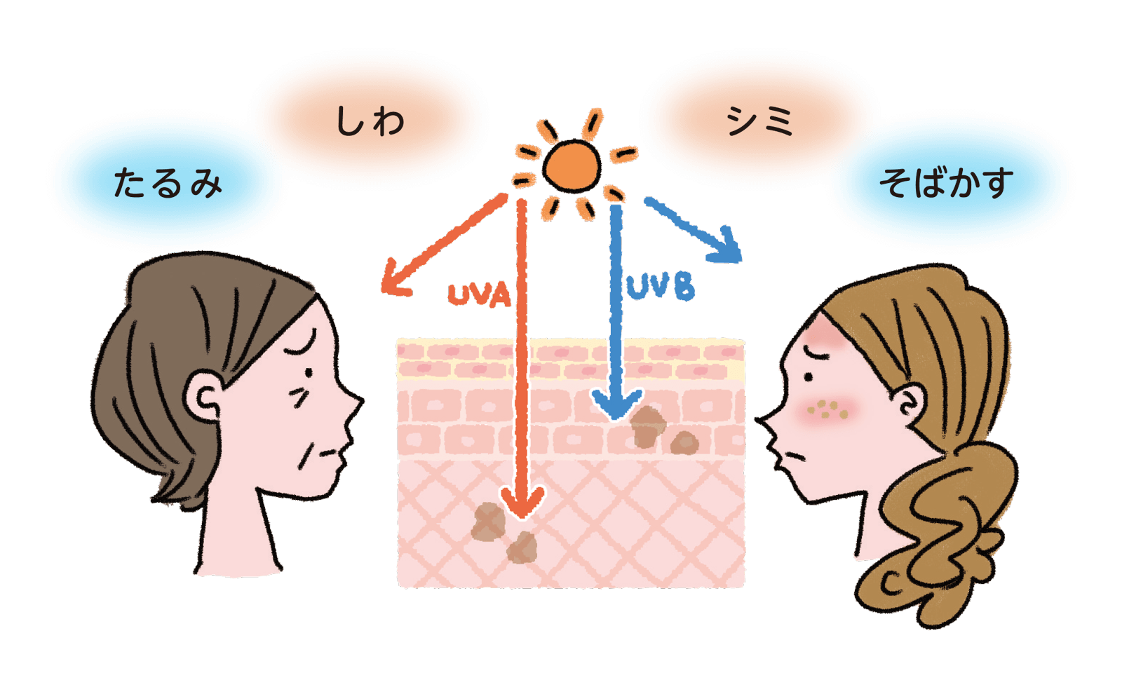 UVAより強いエネルギーを持ち、肌の表面にダメージを与えます。そして細胞を守るためのメラニンが必要以上につくられ、シミ・そばかすの原因になります。