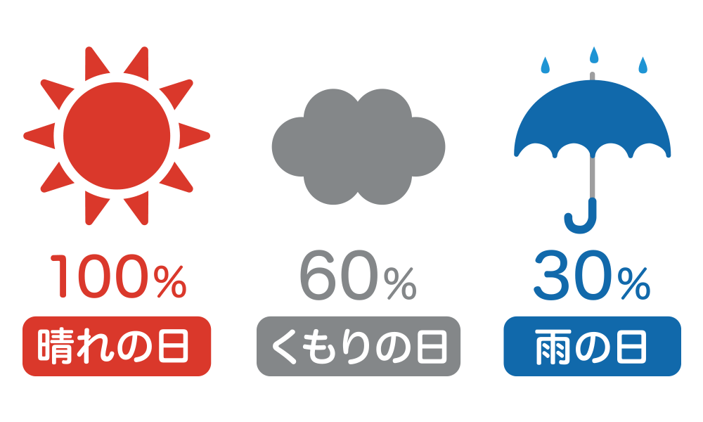 晴れの日の紫外線の量を100%とすると、くもりの日は約60%、雨の日は約30%ともいわれています。そのためどんな天気でも毎日紫外線対策をするのが鉄則です。