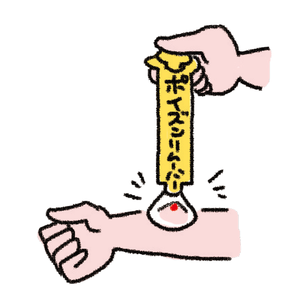 患部をすぐ水で冷やし、水泡ができた場合はワセリンを塗ります。