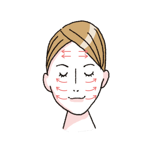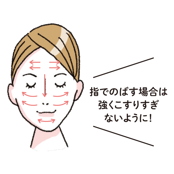 水に濡らしてよく絞ったスポンジで、顔の中心から外側に向かって均一にのばします。