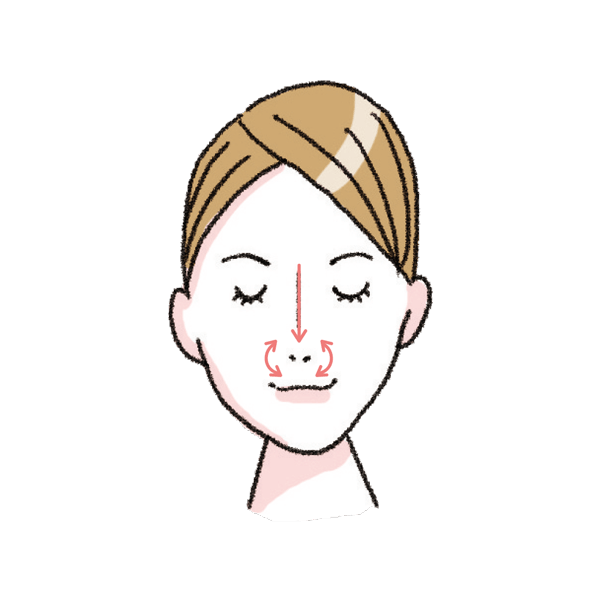 鼻すじを上から下に塗り、小鼻の細かい部分はスポンジを折りたたんで軽くおさえます。