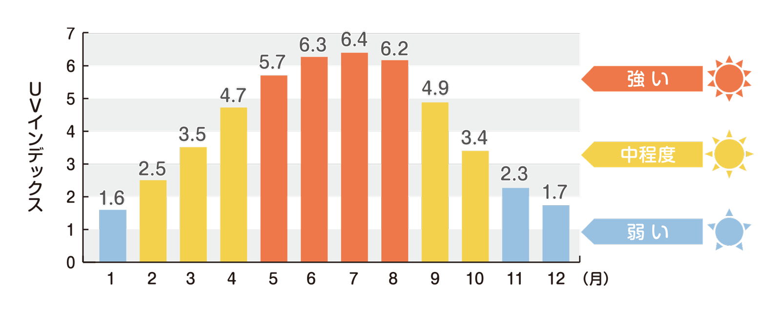 ※気象庁:日最大UVインデックス(解析値)の年間推移グラフを基に作成