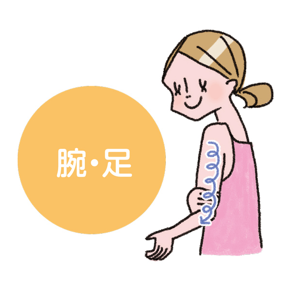 腕や足に沿って日焼け止めを線状に出し、円を描くようにムラなく広げていく。日焼けしやすい手の甲や腕には重ね塗りがおススメ。