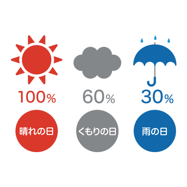 晴れの日の紫外線量を100%とすると、曇りの日は60%、雨の日でも30%の紫外線が地表に届いています。また日陰にいても、地面や建物に反射して空気中に広がる散乱光が肌に届き、ダメージを与えるので注意が必要です。