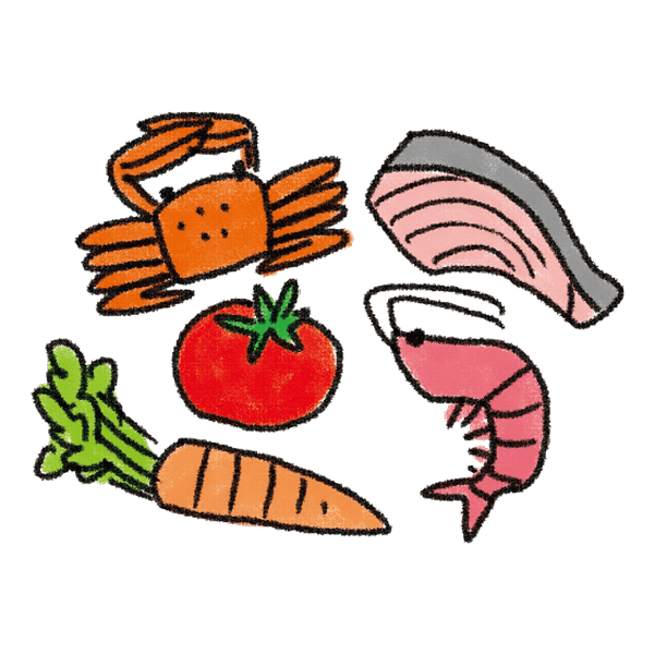 カニ・サケ・エビなどに含まれるアスタキサンチンは肌の老化に影響する酵素を除去する力が強いとされています。トマトに含まれるリコピンも紫外線による酸化や炎症を抑える抗酸化作用があります。緑黄色野菜に多く含まれるβカロテンはビタミンAへと変化して皮膚や粘膜を守る働きがあるため、積極的に取り入れたい栄養素です。