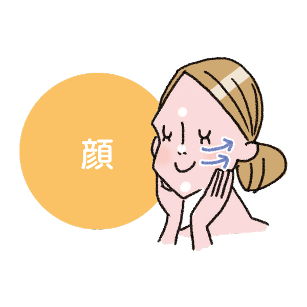 ジェルやミルクタイプなら1円玉大、クリームタイプはパール1粒大を手にとり、頬・額・鼻・顎に置いて、指先でていねいに伸ばす。