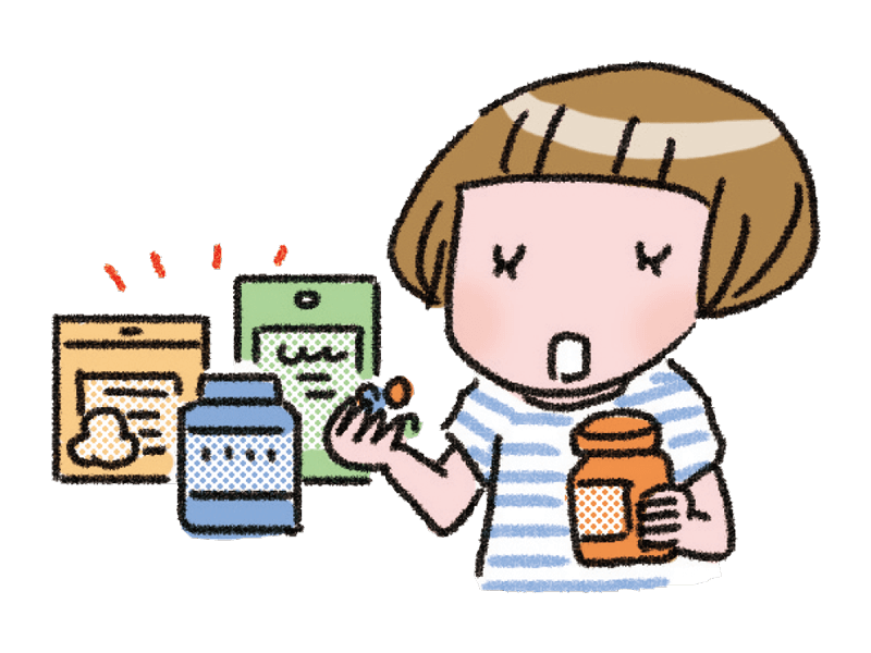 サプリメントの中には吸収が悪くなる組み合わせや、似た成分が入っていて過剰摂取につながる組み合わせもあります。不安なときは、医師や薬剤師に相談して下さい。
