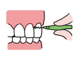歯のすき間に差し込み、ゆっくりと往復させて歯垢を絡め取ります。力を入れすぎないようにしましょう。