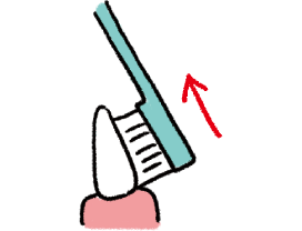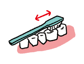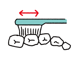 歯のくぼみに対して歯ブラシを水平に当て、小刻みに動かします。