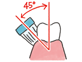 すき間に毛先が入るように45°の角度で当て、やさしく動かします。