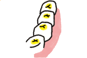 歯みがきは虫歯や歯周病の原因になる歯垢を落とすことが大切です。歯垢がつきやすい場所を意識して1本1本ていねいに磨きましょう。
