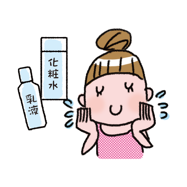 たっぷりの化粧水で水分を補い、保湿剤でフタをして乾燥を防ぎます。
