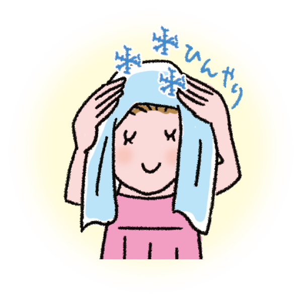 冷水で濡らしたタオルに保冷剤を包んで患部に当てます。