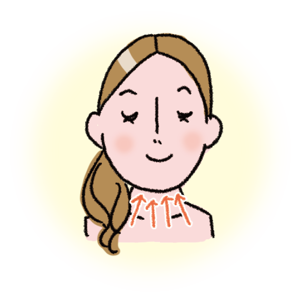 首と襟足に数点ずつ置き、下から上へなじませます。デコルテも忘れずに。