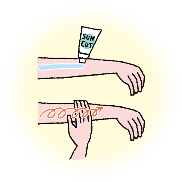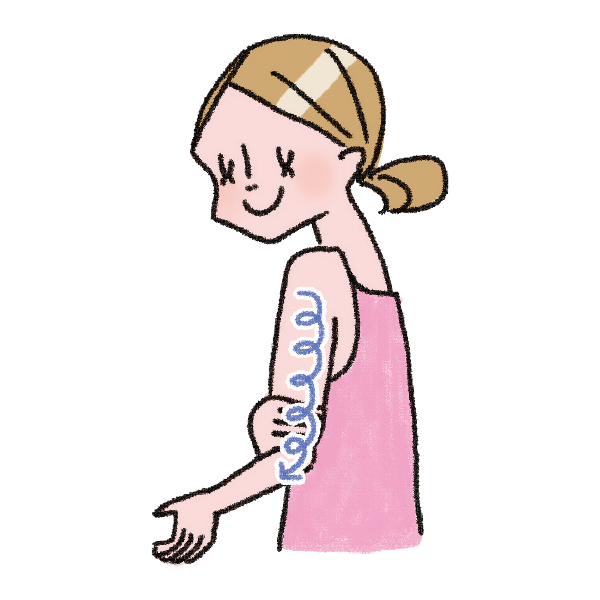 腕や足など体に塗る際は日焼け止めをたっぷり出して、手のひら全体を肌にフィットさせながら大きく円を描くように優しく広げると、ムラなく塗ることができます。