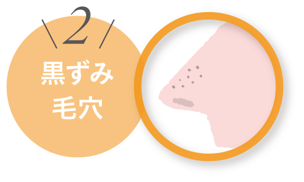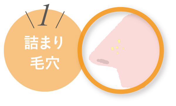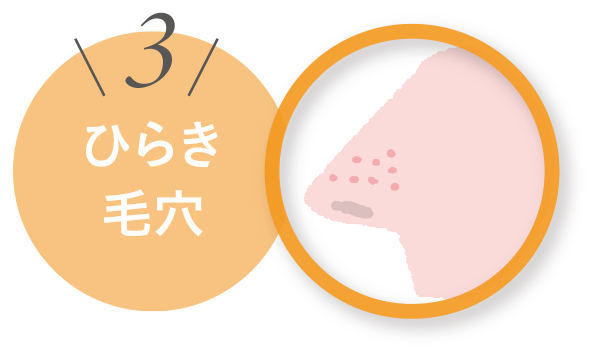 皮脂の過剰分泌によって毛穴が丸く開いた状態で、Tゾーンにできやすいトラブルです。