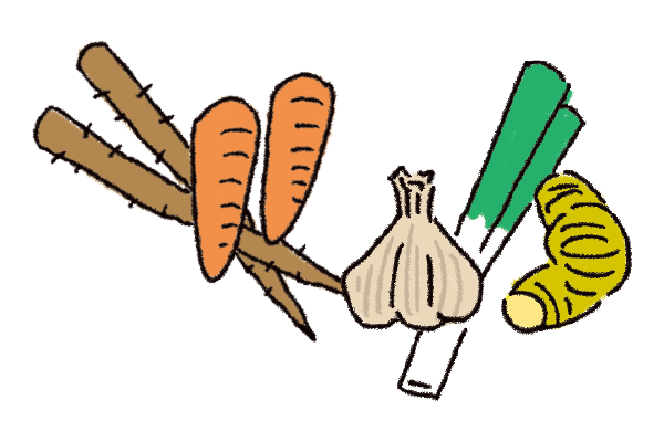 香辛料:ねぎ、にんにく、しょうが、とうがらしなど