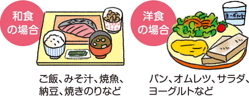 パンやご飯などの糖質(炭水化物)だけでなく、肉や魚、卵などのたんぱく質を加えてバランスよく食べると、体内時計がしっかりとリセットされます。