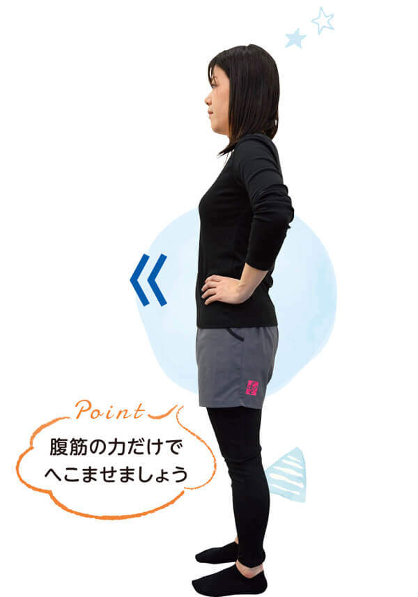 おへその下を意識しながら、お腹全体をへこませる。
