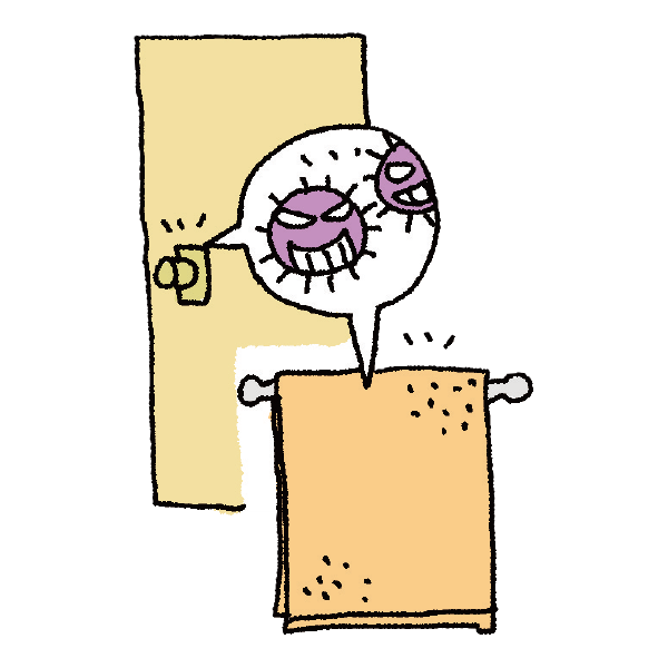 • 感染者が十分に手を洗わずに触れたドアノブなどに触れる。など