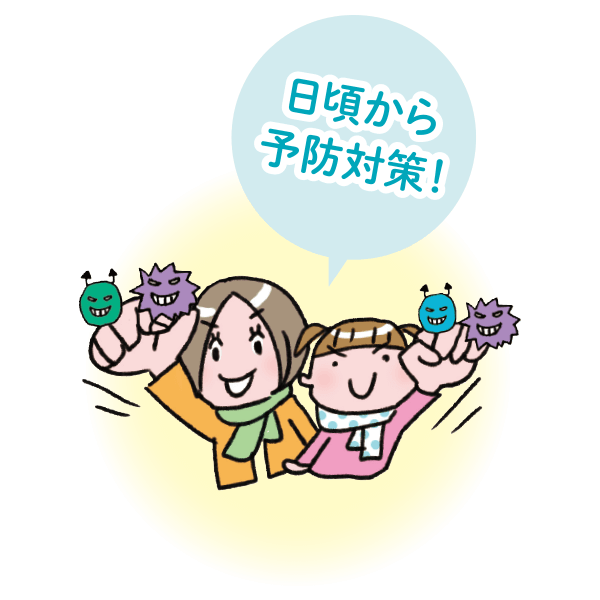 現在、治療のための抗ウイルス剤はなく対症療法が中心となります。日頃から予防対策を徹底しましょう。