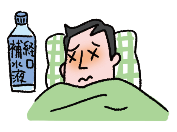 おう吐や下痢などによる脱水症状を防ぐために、経口補水液やスポーツドリンクなどをこまめに飲みましょう。安静にして十分な休息をとり、体力を回復させます。手洗い・うがい、手指やドアノブなどの消毒も徹底し、