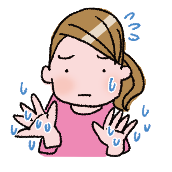 手のひら、足の裏、わきの下など体の一部に汗が出る