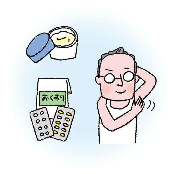 多汗症の原因を探りながら発汗のコントロールや心理的なストレスの軽減、皮膚トラブルの予防などを行い、日常生活に支障を出さないように治療します。