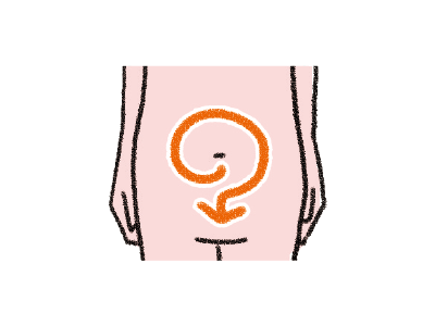 腸に沿って時計回りに「の」の字を描くようにお腹をマッサージし、腸を刺激します。
