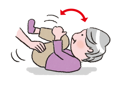 仰向けで両ひざを胸に近づけ、お尻が浮くようにゆっくり揺り動かします。
