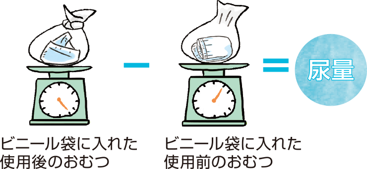 - ①使用後のおむつをビニール袋に入れて計る