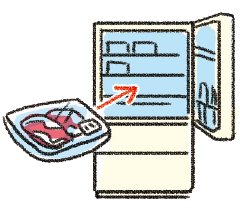 購入した食材はすぐ冷蔵庫で保管し、早めに食べ切りましょう。