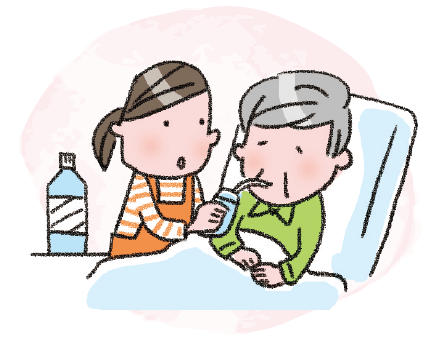 経口補水液などで水分を補給し、脱水症状を防ぎましょう。