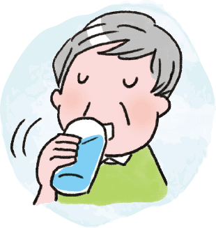 高齢者の方は脱水状態になりやすいため、冬でも熱中症にかかることがあります。水分を十分に摂るようにしましょう。水分が不足すると、消化や排泄機能が妨げられたり、粘膜や皮膚の弾力性が失われるなどの障害が起こるだけでなく、血行不良により脳梗塞を起こしやすくなります。食事とは別に1日にコップ5杯くらい(約1000ml)の水分補給を心がけて下さい。飲料で摂りにくい場合は、ゼリーや果物で摂取するという方法もあります。