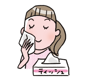 1洗顔・スキンケア後、ティッシュで顔をやさしく押さえて、余分な油分を取りましょう。