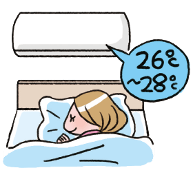 1エアコンは26℃~28℃に設定し、2~3時間ほどで切れるようタイマーをセットしましょう。